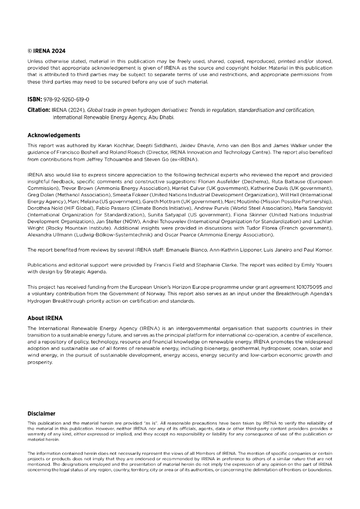 国际可再生能源署IRENA:2024年绿氢衍生物的全球贸易:监管、标准化和认证趋势报告(英文版).pdf