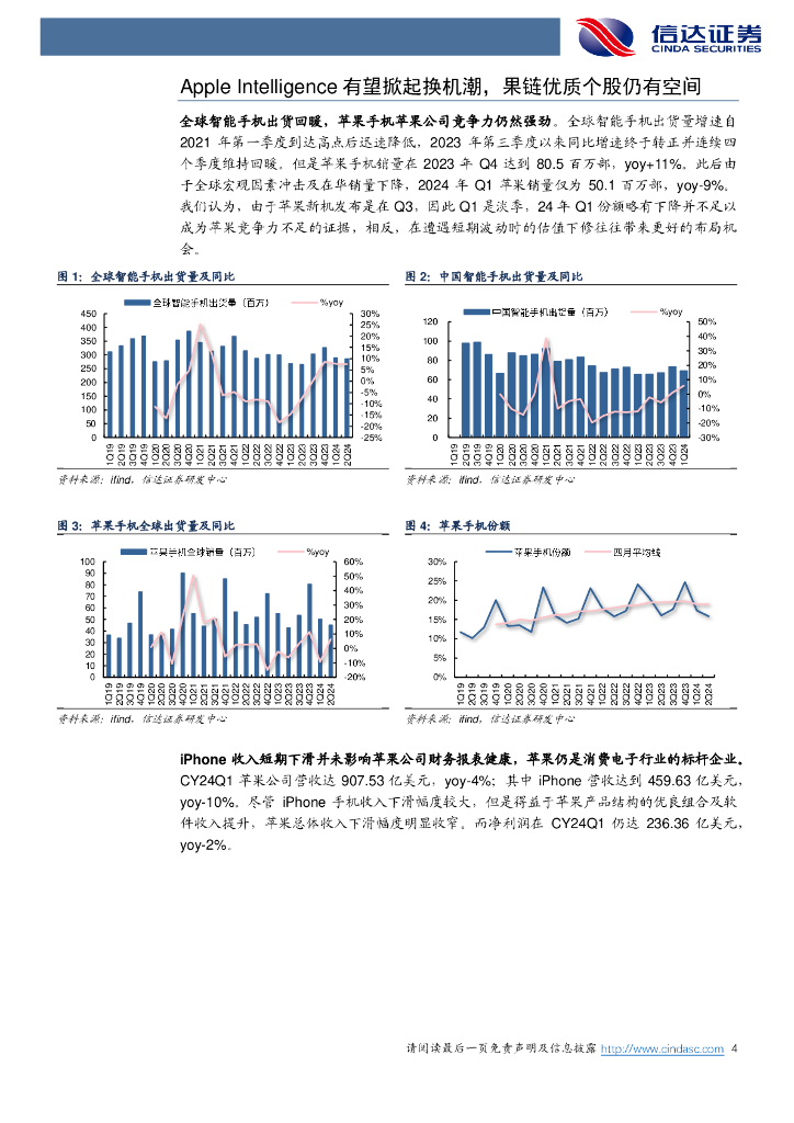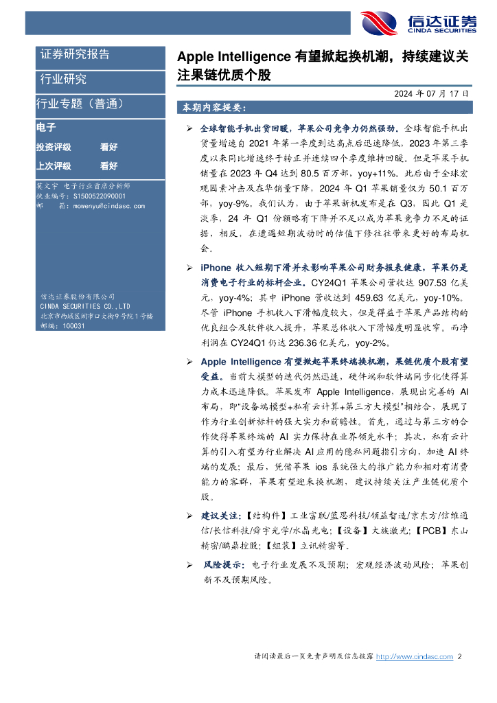 信达证券:电子行业专题(普通):AppleIntelligence有望掀起换机潮,持续建议关注果链优质个股.pdf
