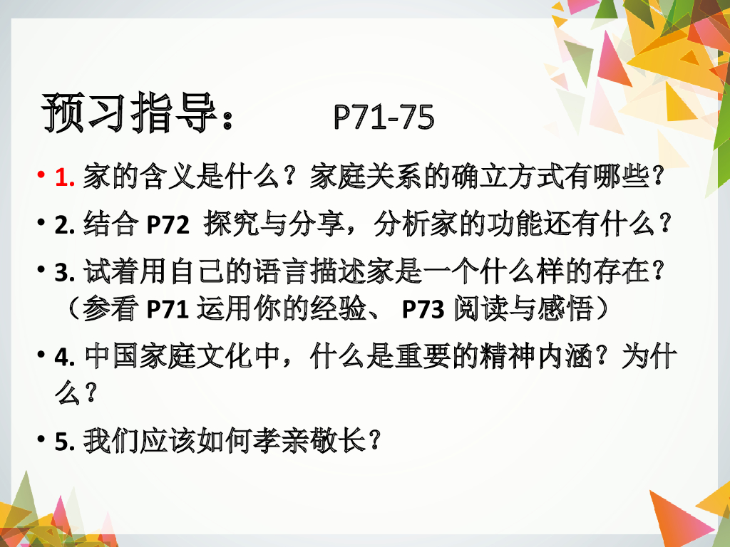 七年级上册 初中道德与法治人教7上道德与法治第七课第1课时《家的意味》.ppt
