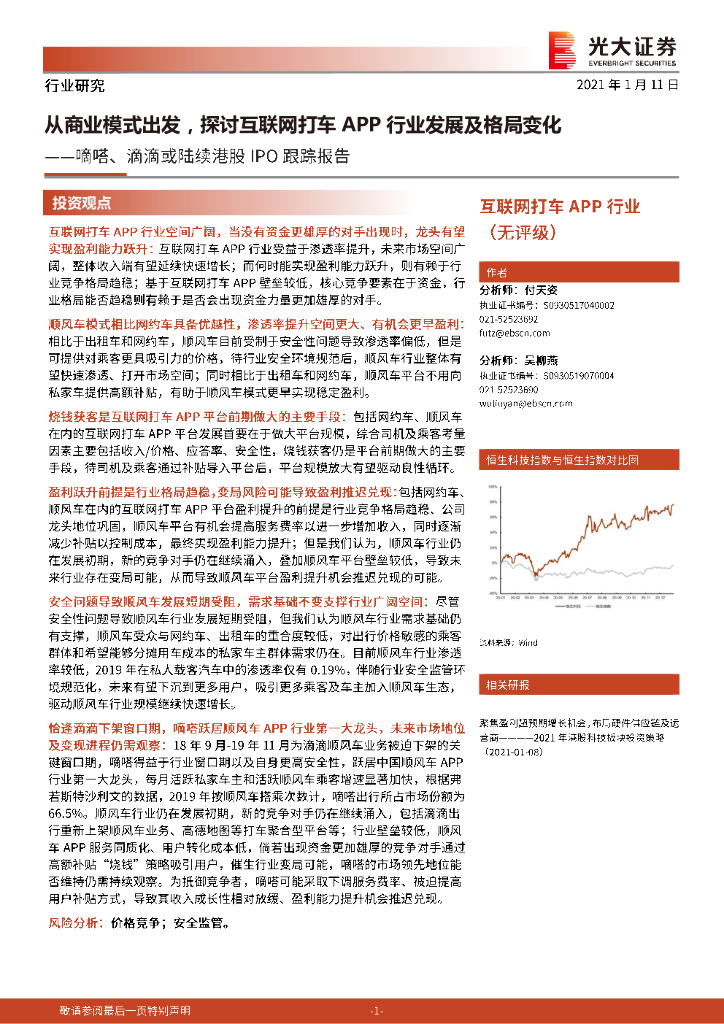 光大证券:嘀嗒、滴滴或陆续港股IPO跟踪报告:从商业模式出发,探讨互联网打车APP行业发展及格局变化.pdf
