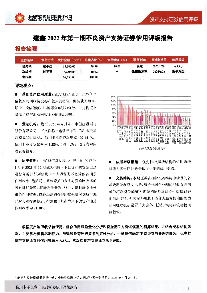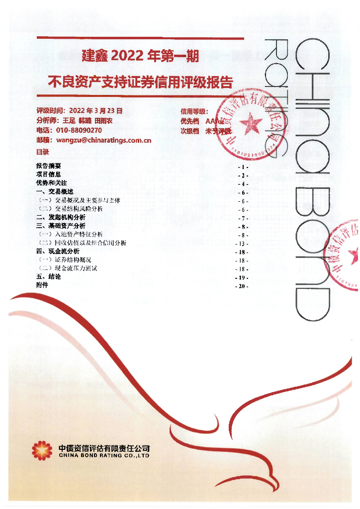 中债资信:建鑫2022年第一期不良资产支持证券信用评级报告.pdf