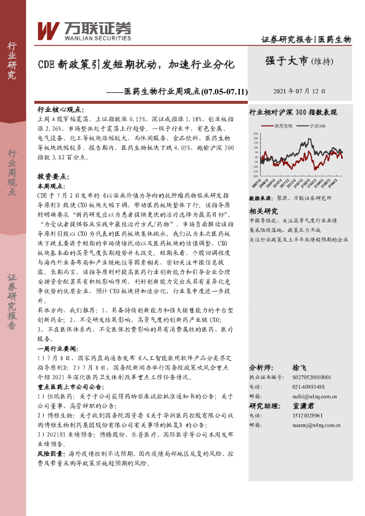 万联证券:医药生物行业周观点:CDE新政策引发短期扰动,加速行业分化.pdf