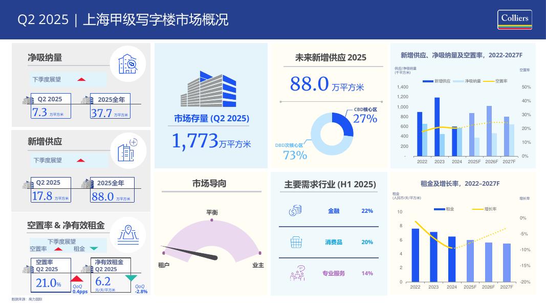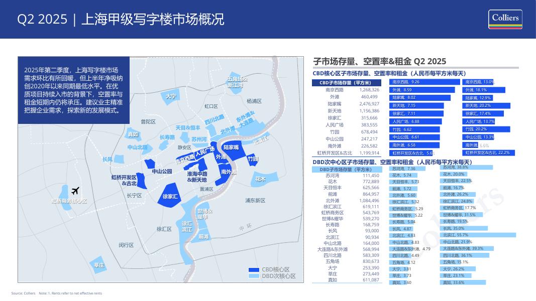 Colliers高力国际:2025年第二季度上海写字楼办公楼出租租金市场分析报告与发展前景趋势展望报告.pdf