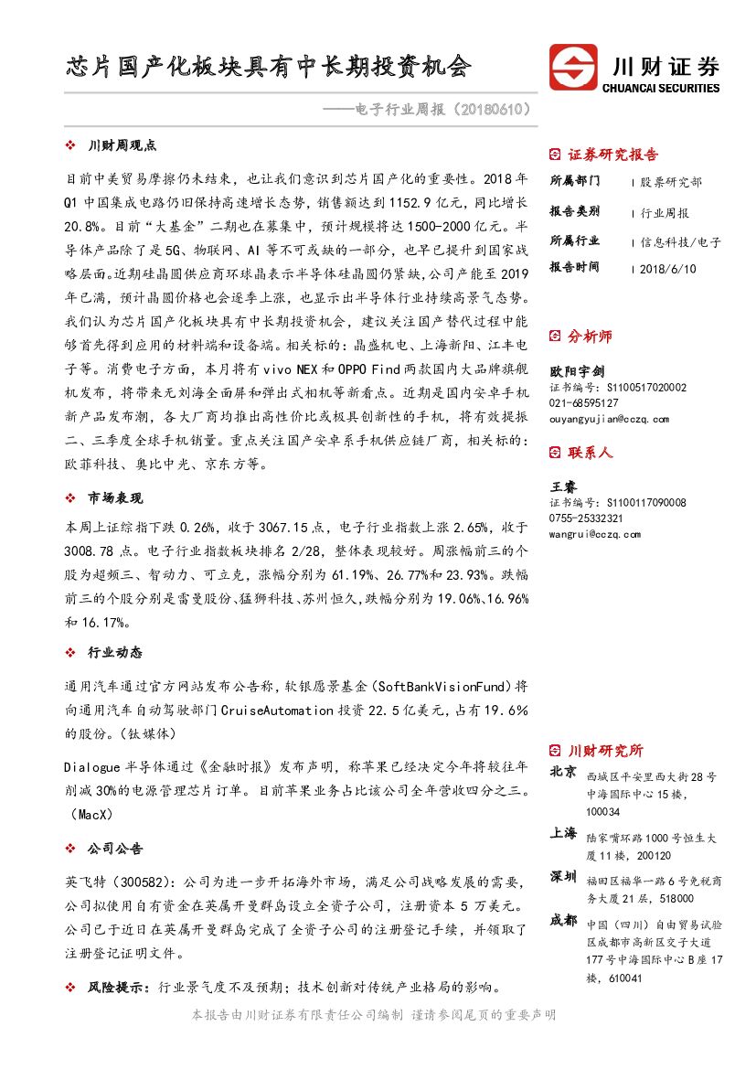 川财证券:电子行业周报:芯片国产化板块具有中长期投资机会.pdf