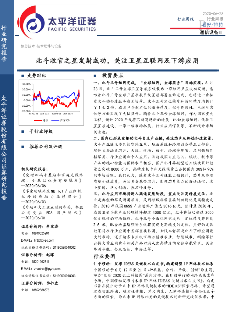 太平洋证券:通信设备Ⅲ行业周报:北斗收官之星发射成功,关注卫星互联网及下游应用.pdf