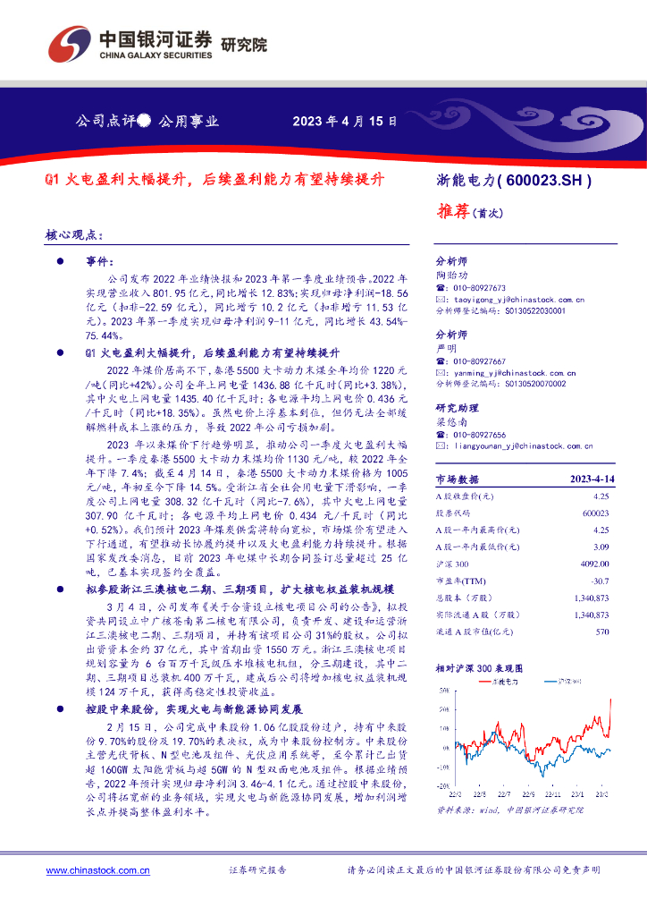 中国银河:浙能电力(600023)-Q1火电盈利大幅提升,后续盈利能力有望持续提升.pdf