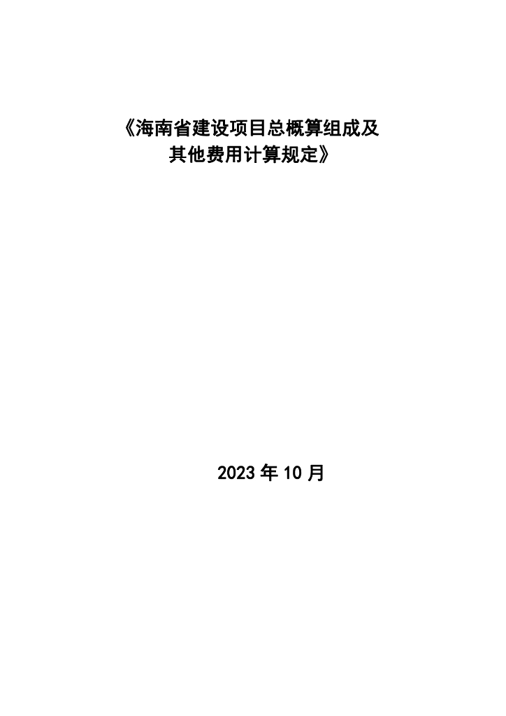 海南省住房和城乡建设厅:海南省建设项目总投资组成及其他费用计算规定.pdf