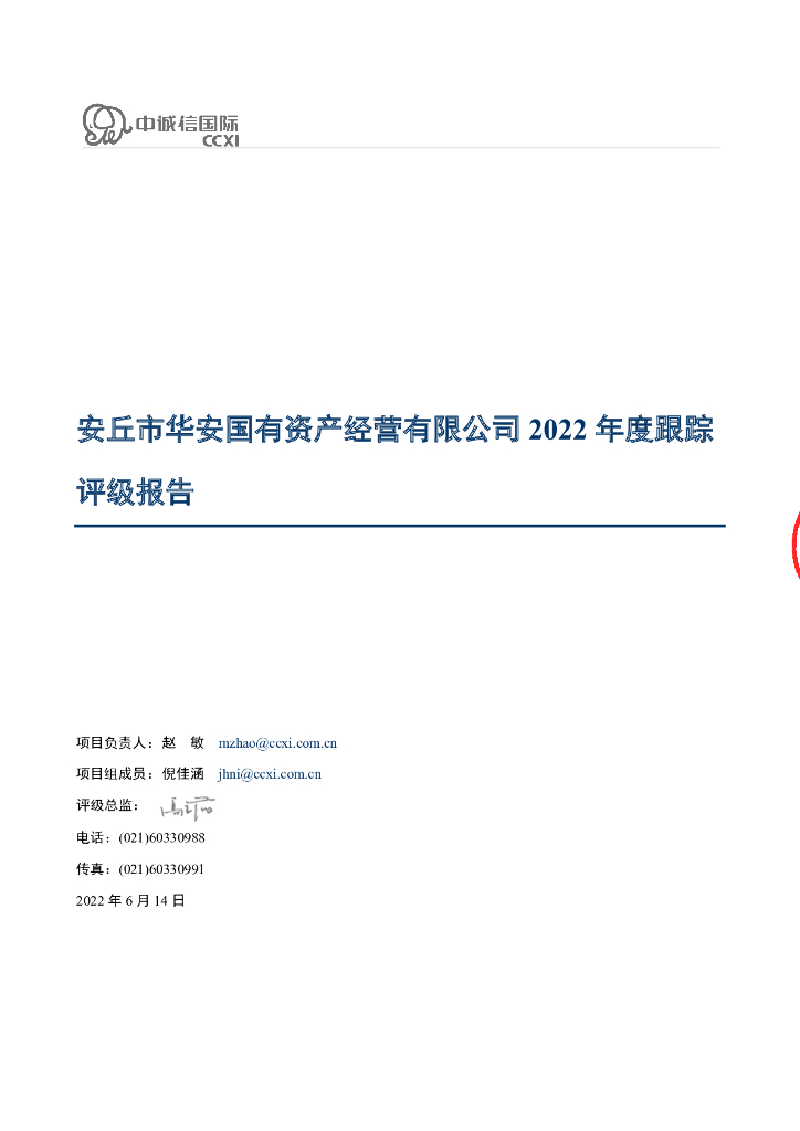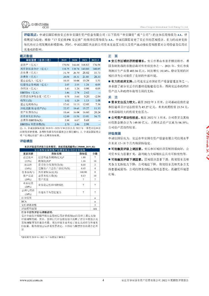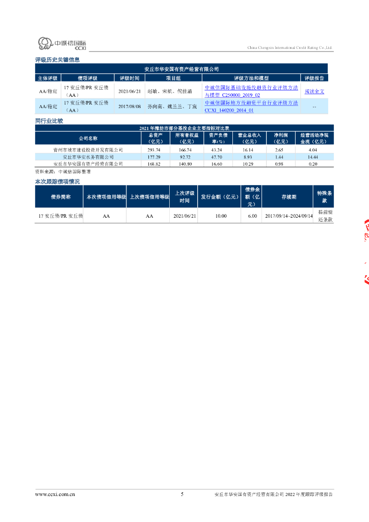 中诚信:安丘市华安国有资产经营有限公司2022年度跟踪评级报告.pdf