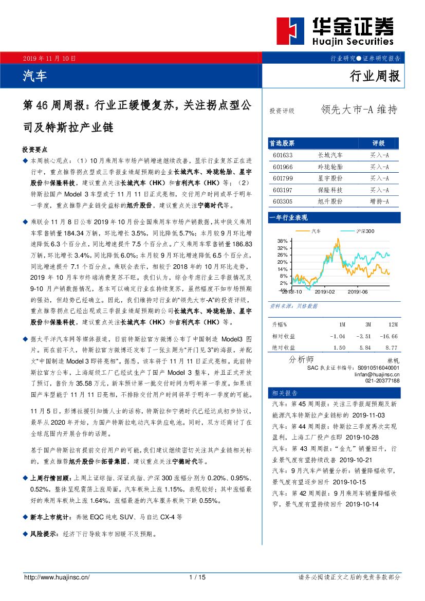 华金证券:汽车第46周周报:行业正缓慢复苏,关注拐点型公司及特斯拉产业链.pdf