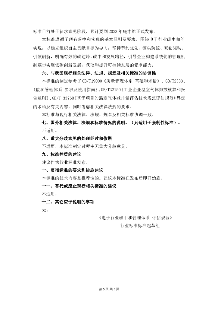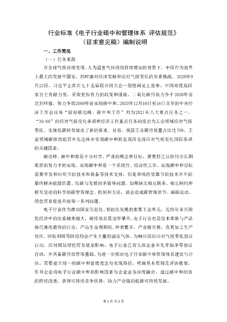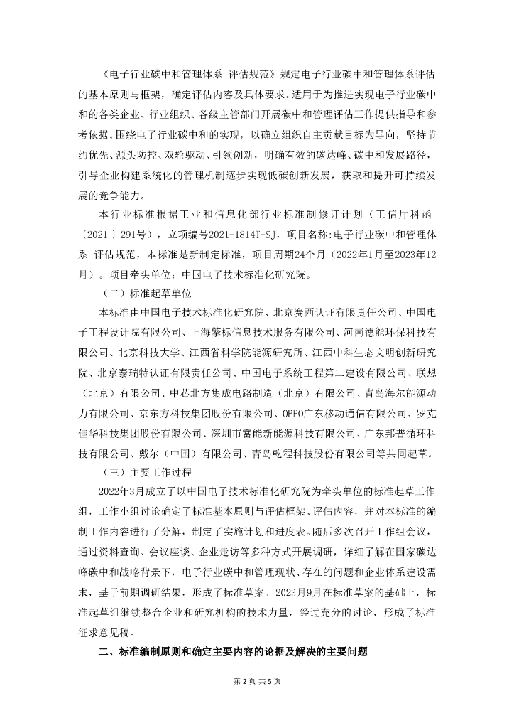 《电子行业碳中和管理体系 评估规范》(征求意见稿编制说明).doc