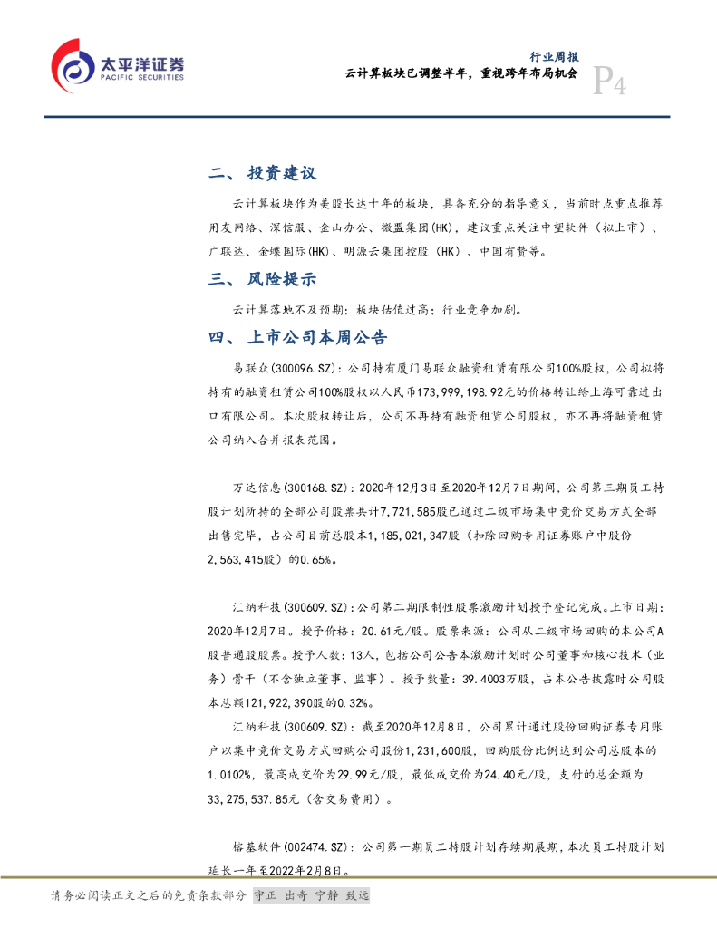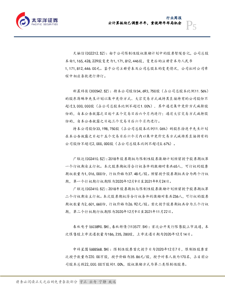 太平洋证券:信息行业周报:云计算板块已调整近半年,重视跨年布局机会.pdf