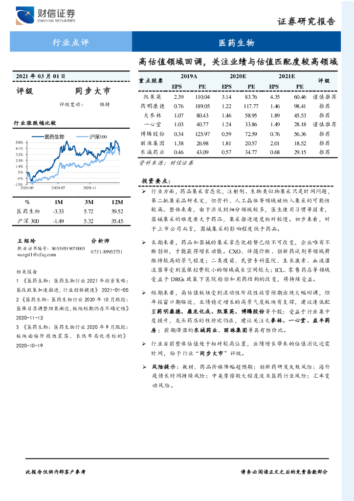 财信证券:医药生物:高估值领域回调,关注业绩与估值匹配度较高领域.pdf