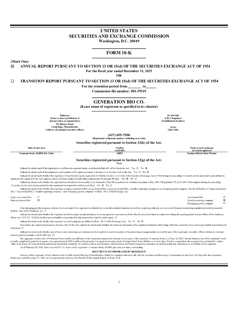 Generation Bio Co.(GBIO)2023财年年度报告(英文版).pdf