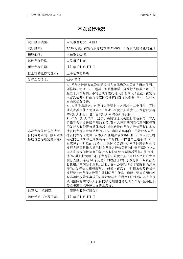 山东元利科技股份有限公司上交所主板IPO上市招股说明书.pdf