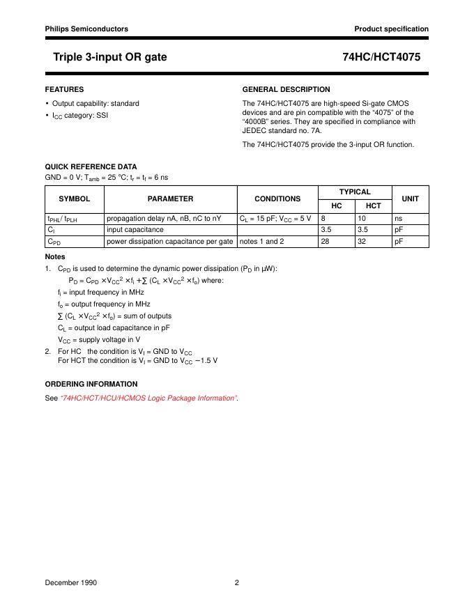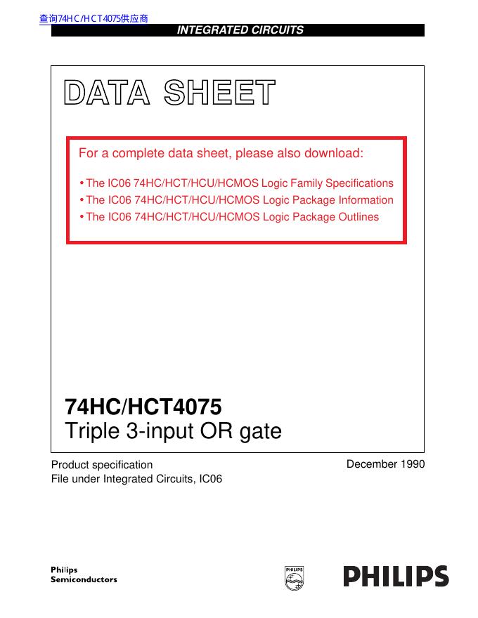 PHILIPS 74HC/HCT4075 Triple 3-input OR gate 数据手册.pdf