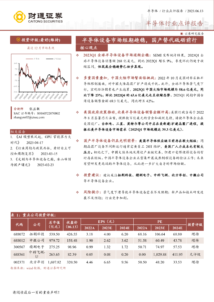 财通证券:半导体行业点评报告:半导体设备市场短期趋稳,国产替代砥砺前行.pdf