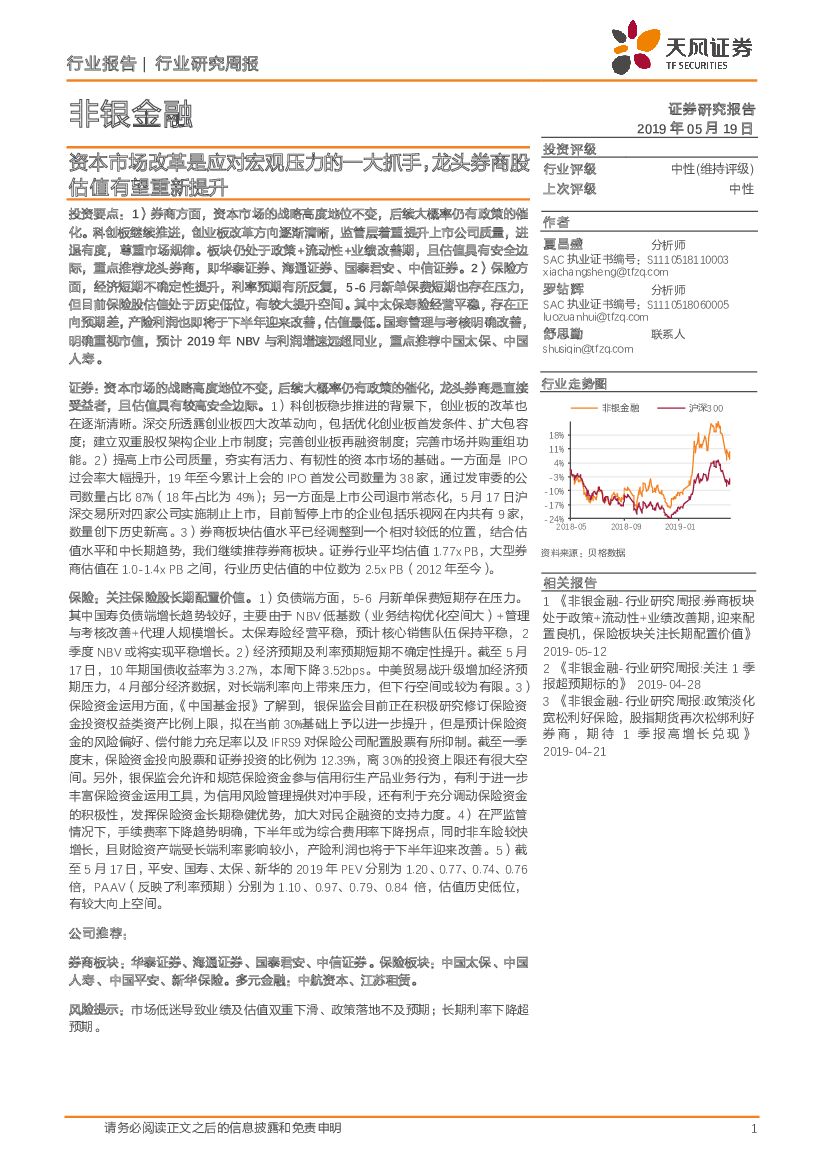 天风证券:非银金融行业研究周报:资本市场改革是应对宏观压力的一大抓手,龙头券商股估值有望重新提升.pdf