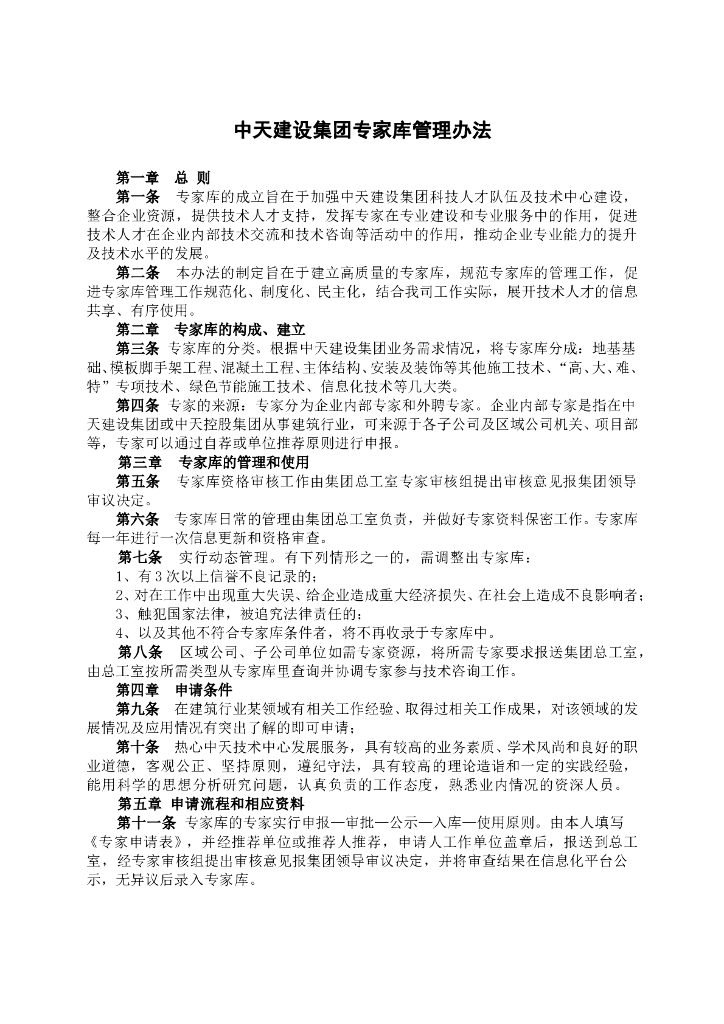 [中天建设]专家库管理办法.doc