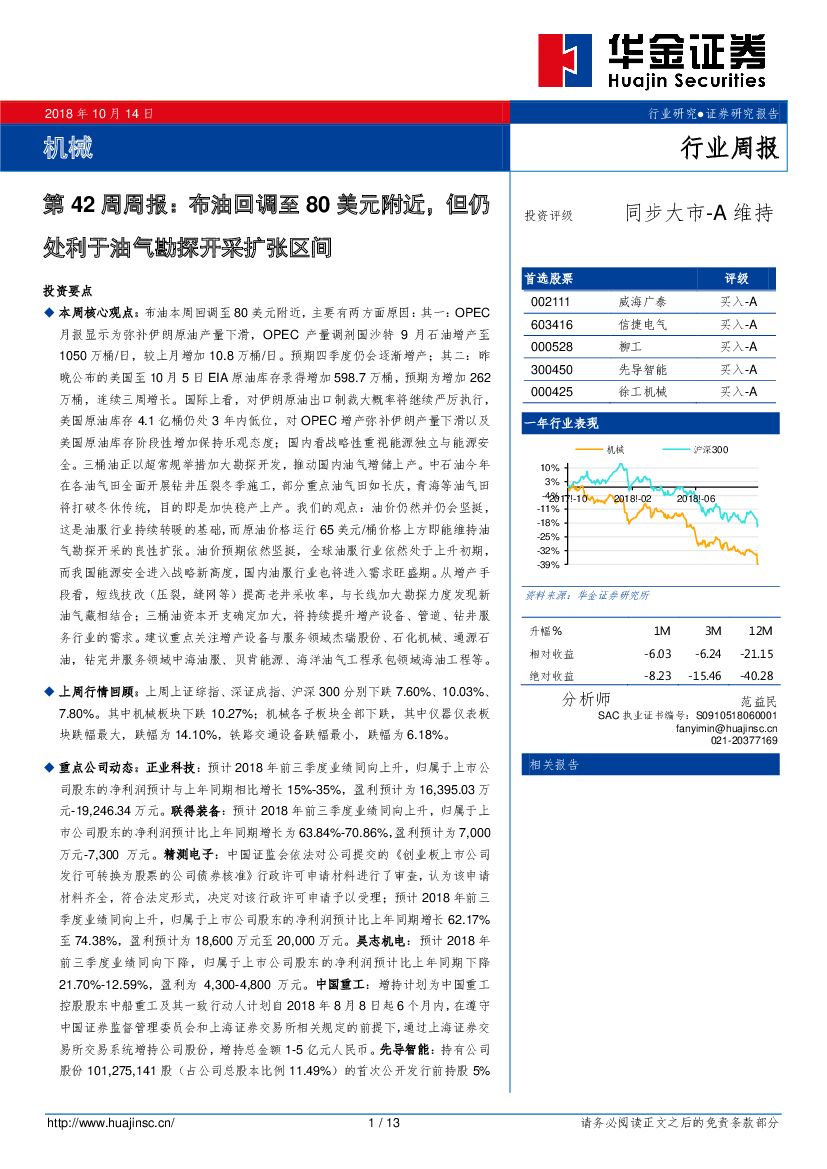 华金证券:机械第42周周报:布油回调至80美元附近,但仍处利于油气勘探开采扩张区间.pdf