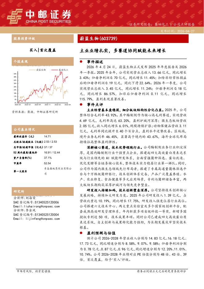 中邮证券:蔚蓝生物(603739)-主业业绩扎实,多赛道协同赋能未来增长.pdf