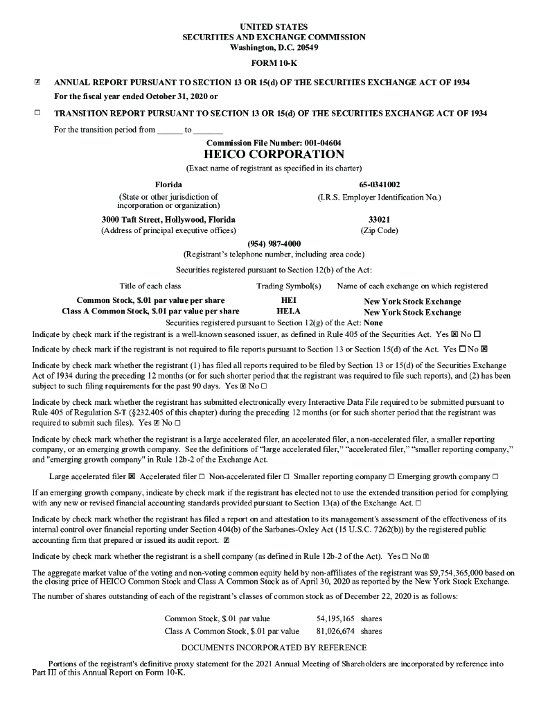 HEICO Corp.(HEI)2020财年年度报告(英文版).pdf