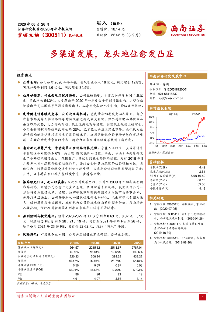 西南证券:雪榕生物(300511)-多渠道发展,龙头地位愈发凸显.pdf
