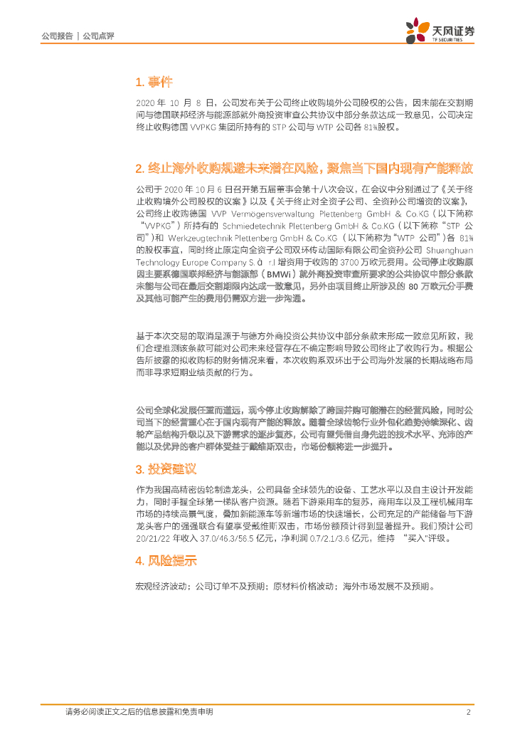天风证券:双环传动(002472)-事件点评:终止海外收购项目,聚焦国内现有产能.pdf