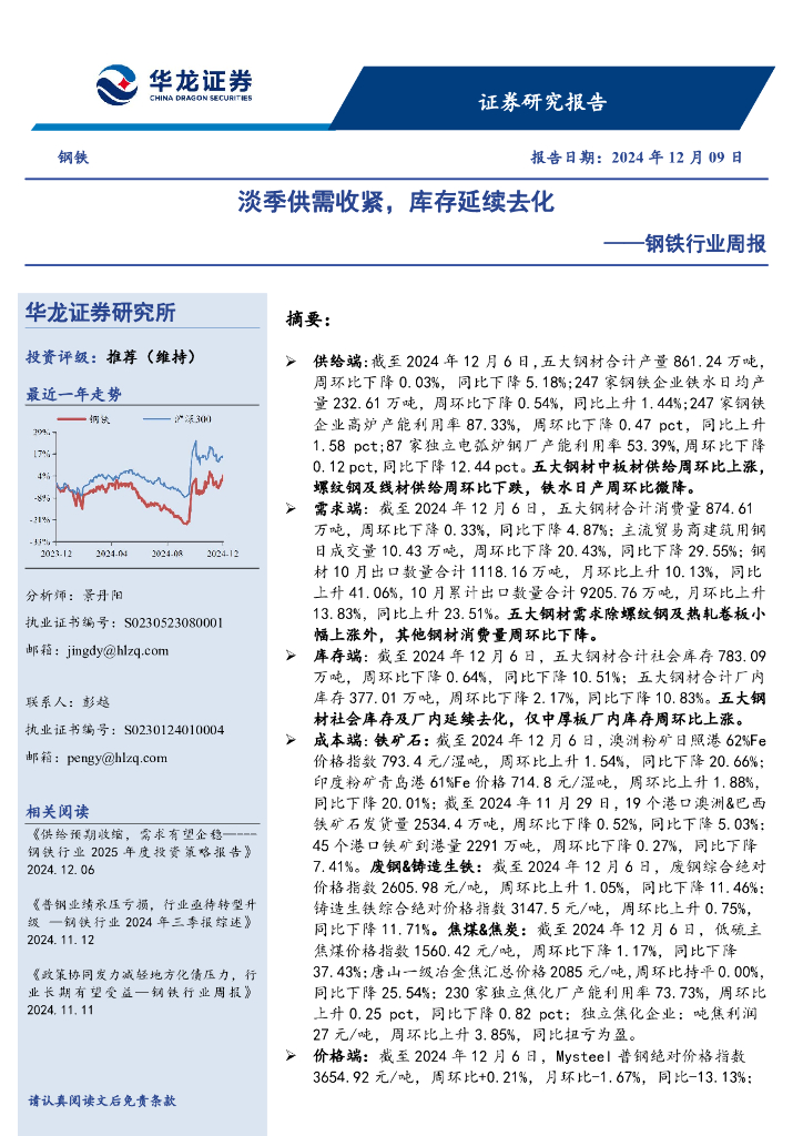 华龙证券:钢铁行业周报:淡季供需收紧,库存延续去化.pdf
