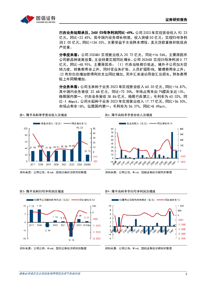 国信证券:隆平高科(000998)-2023年报及2024一季报点评:巴西业务短期承压,24Q1归母净利润同比-49%.pdf