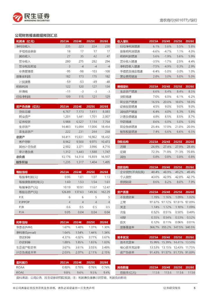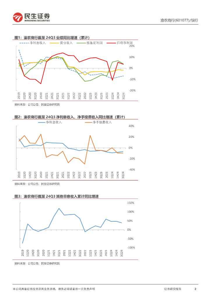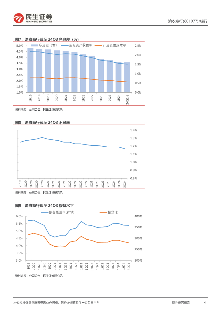 民生证券:渝农商行(601077)-2024年三季报点评:利润增速稳健,不良率下降.pdf