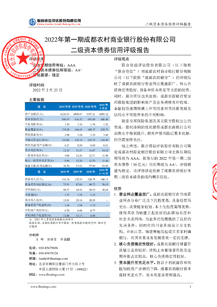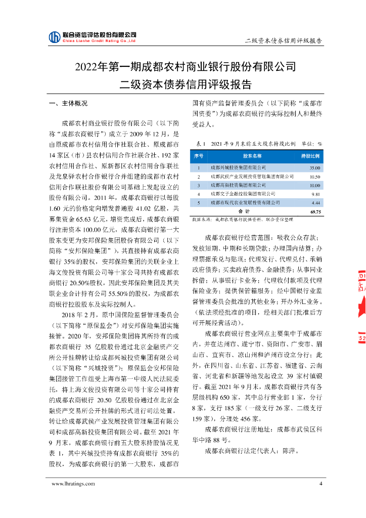 联合资信:2022年第一期成都农村商业银行股份有限公司二级资本债券信用评级报告.pdf