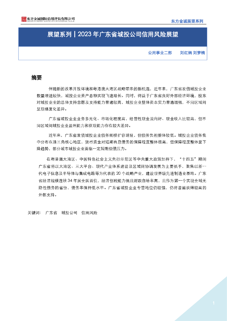 东方金诚:展望系列-2023年广东省城投公司信用风险展望.pdf