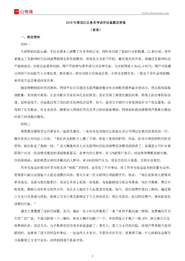 2018年黑龙江公务员考试申论真题及答案(省直).pdf