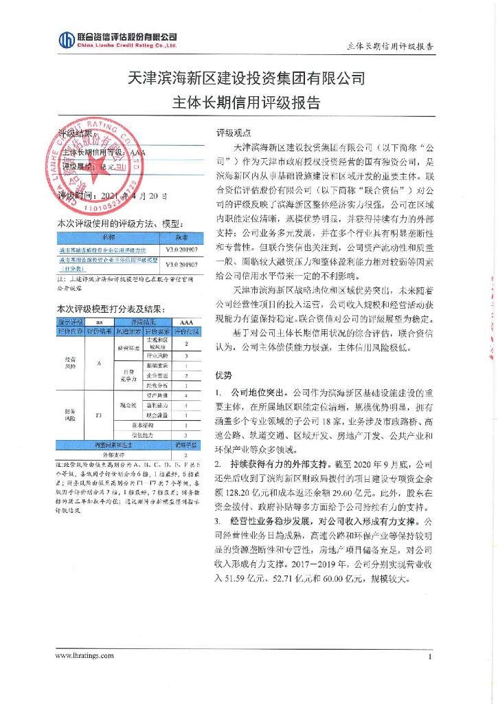 联合资信:天津滨海新区建设投资集团有限公司主体长期信用评级报告.pdf