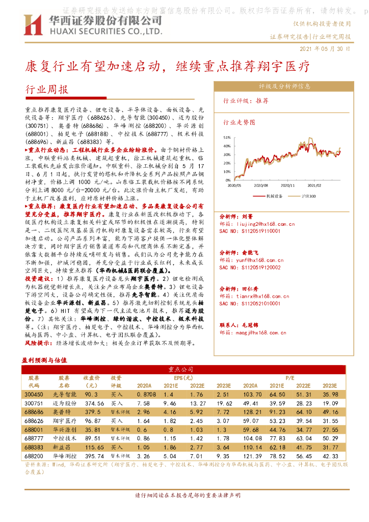 华西证券:机械行业周报:康复行业有望加速启动,继续重点推荐翔宇医疗.pdf