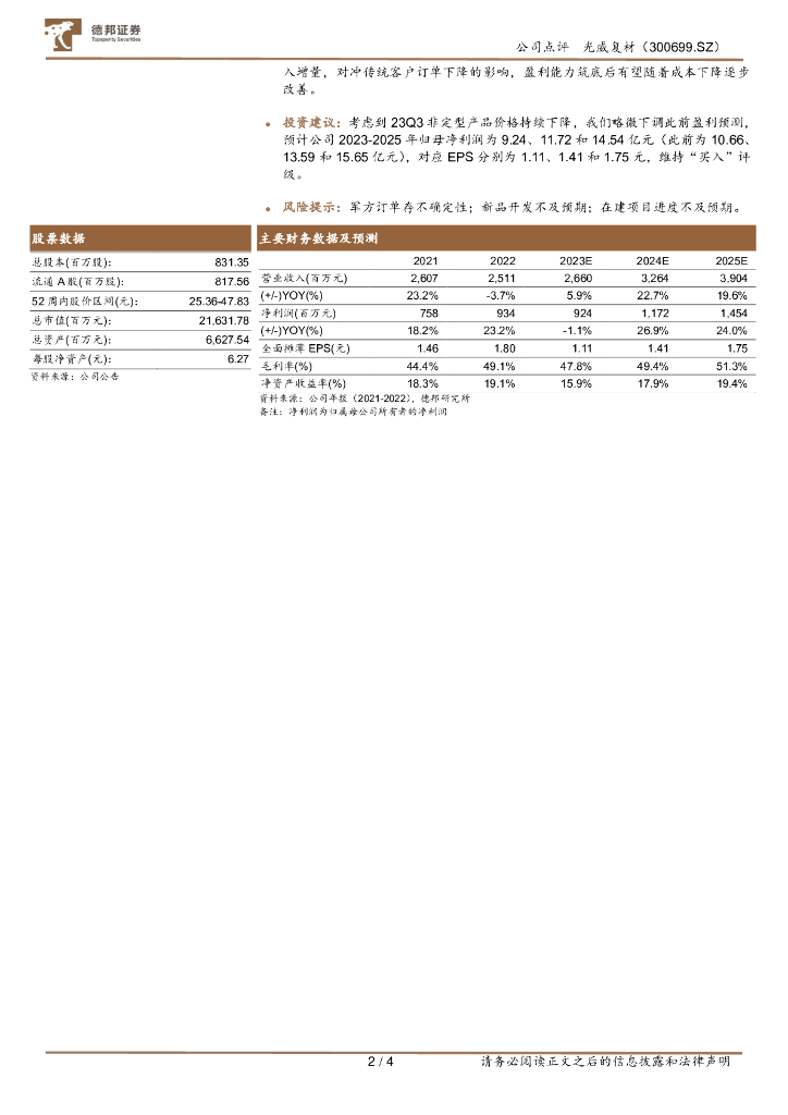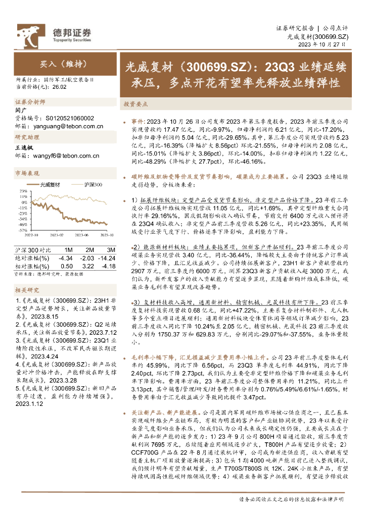 德邦证券:光威复材(300699)-23Q3业绩延续承压,多点开花有望率先释放业绩弹性.pdf