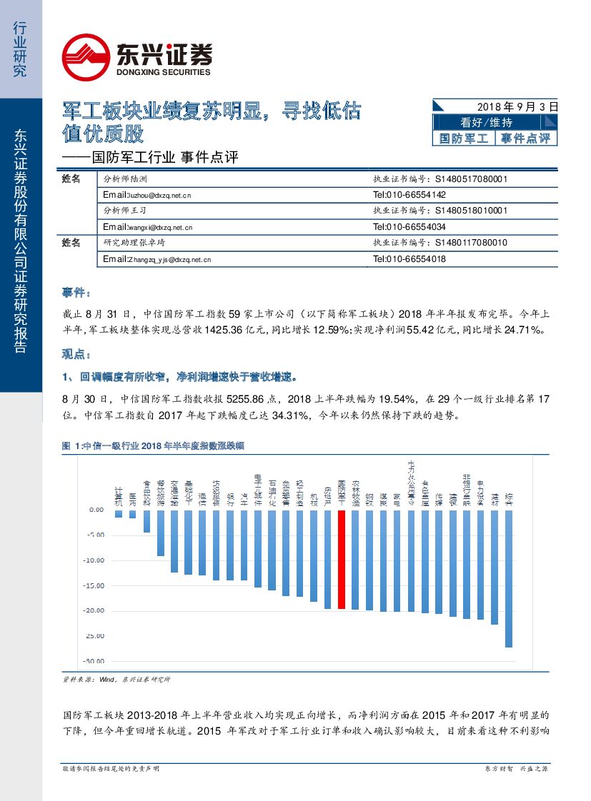 东兴证券:国防军工行业事件点评:军工板块业绩复苏明显,寻找低估值优质股.pdf