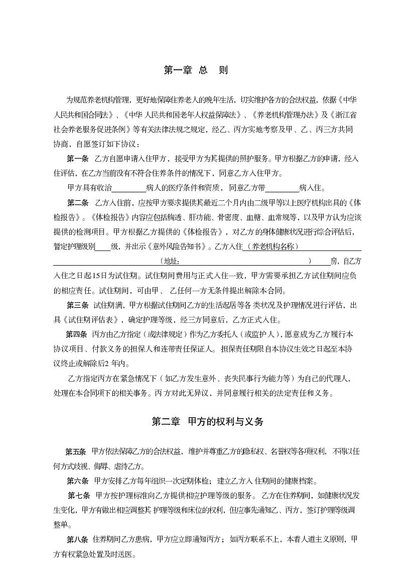 浙江省养老机构服务合同 (示范文本).pdf