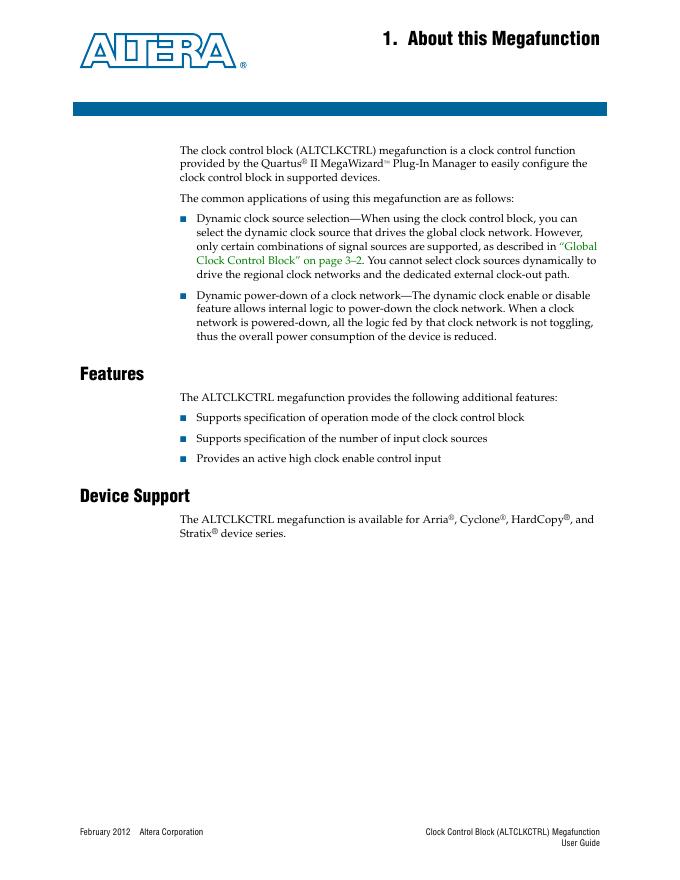 ALTERA Clock Control Block (ALTCLKCTRL) Megafunction 用户指南.pdf