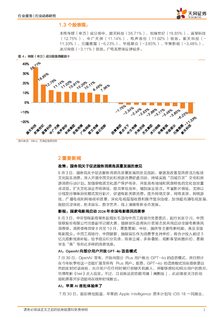 天风证券:传媒行业第30周观点:进口游戏版号集中发放,GPT-4o语音功能向部分用户开放.pdf