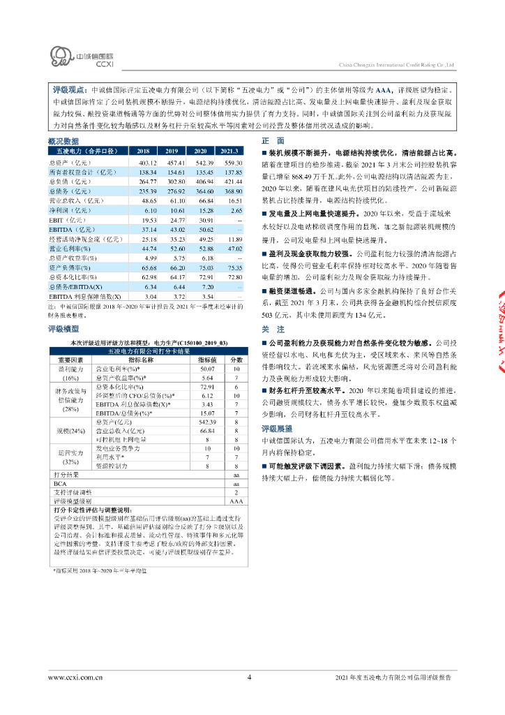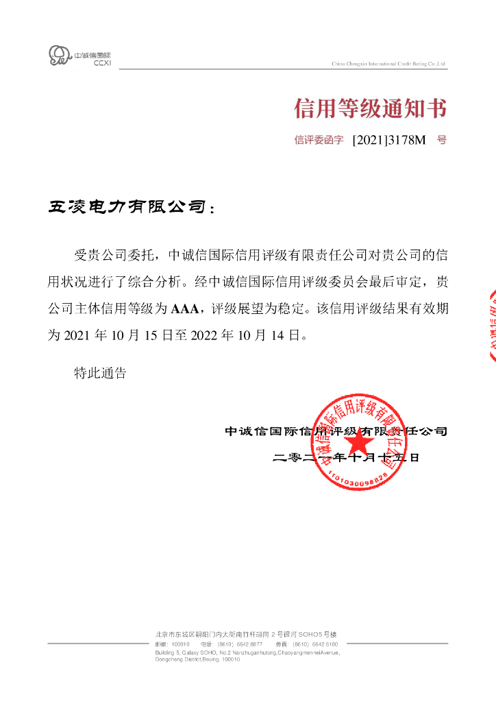 中诚信:2021年度五凌电力有限公司信用评级报告.pdf