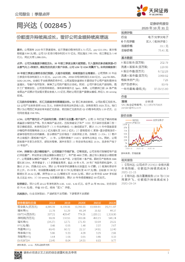 天风证券:同兴达(002845)-份额提升持续高成长,看好公司业绩持续高增速.pdf