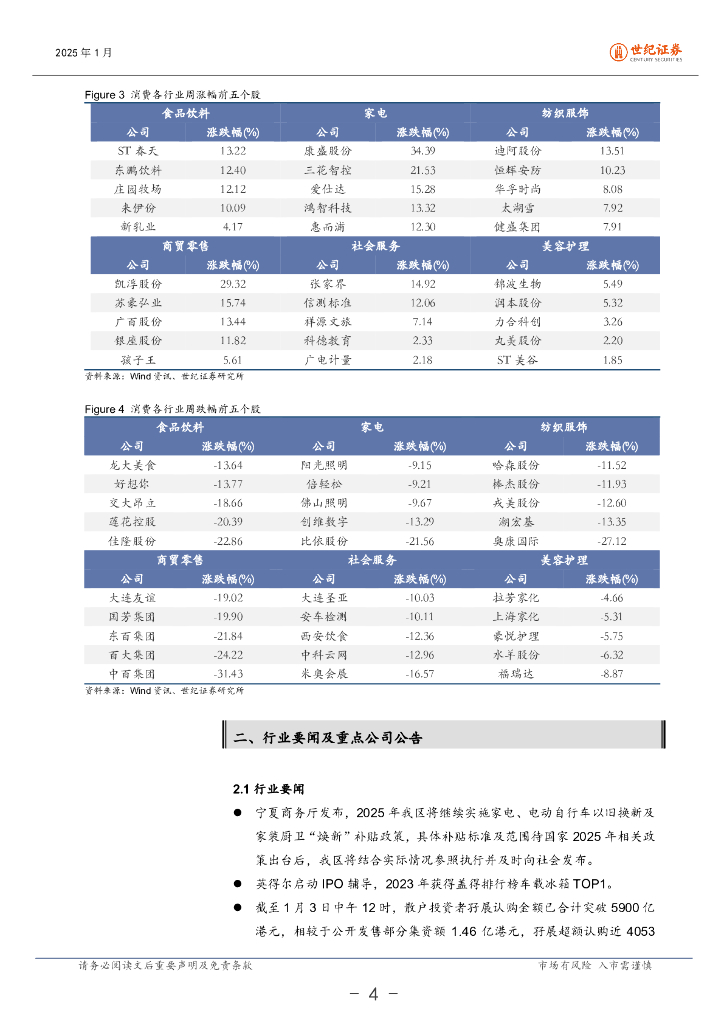 世纪证券:大消费行业周报(1月第2周):2025家电以旧换新扩围或提振内需.pdf