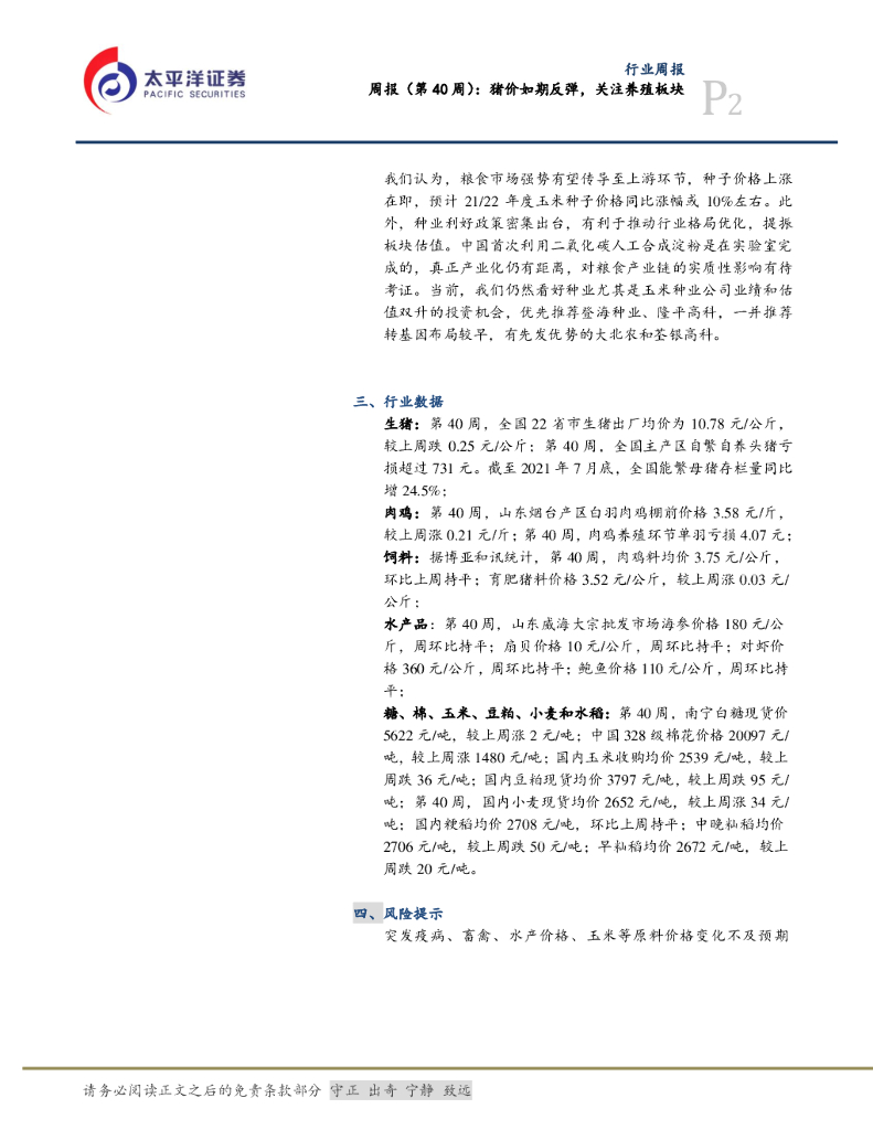 太平洋证券:农林牧渔周报(第40周):猪价如期反弹,关注养殖板块.pdf