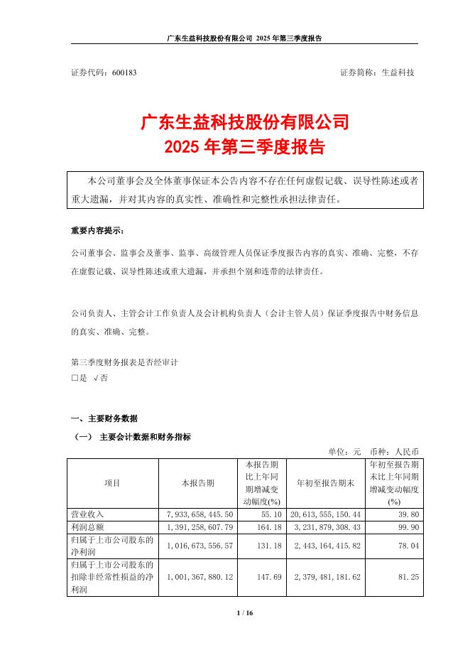 600183-生益科技:生益科技2025年第三季度报告.pdf