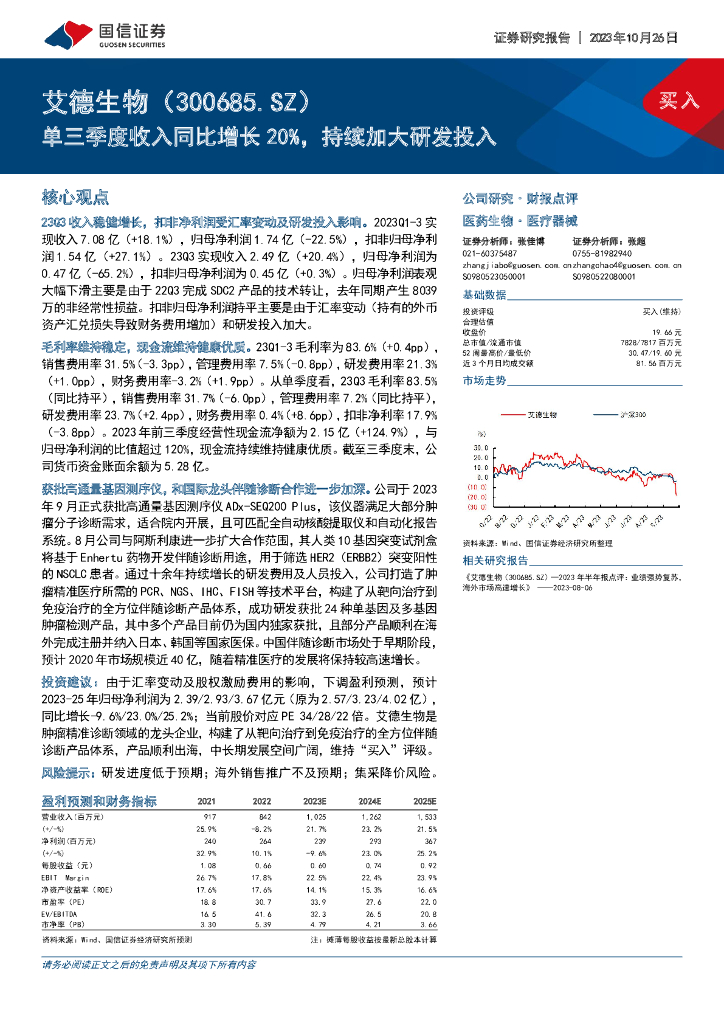国信证券:艾德生物(300685)-单三季度收入同比增长20%,持续加大研发投入.pdf