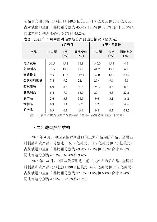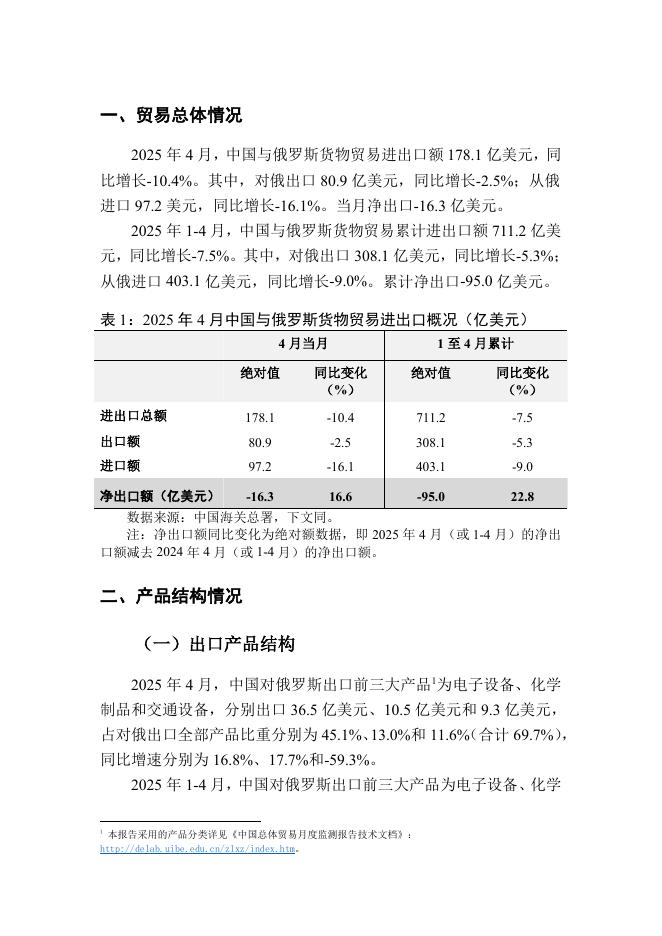 对外经济贸易大学:中俄总体贸易月度监测报告(2025年1-4月).pdf