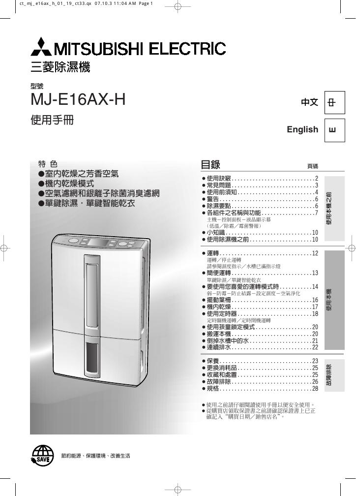三菱除湿机 MJ-E16AX-H 使用手冊.pdf