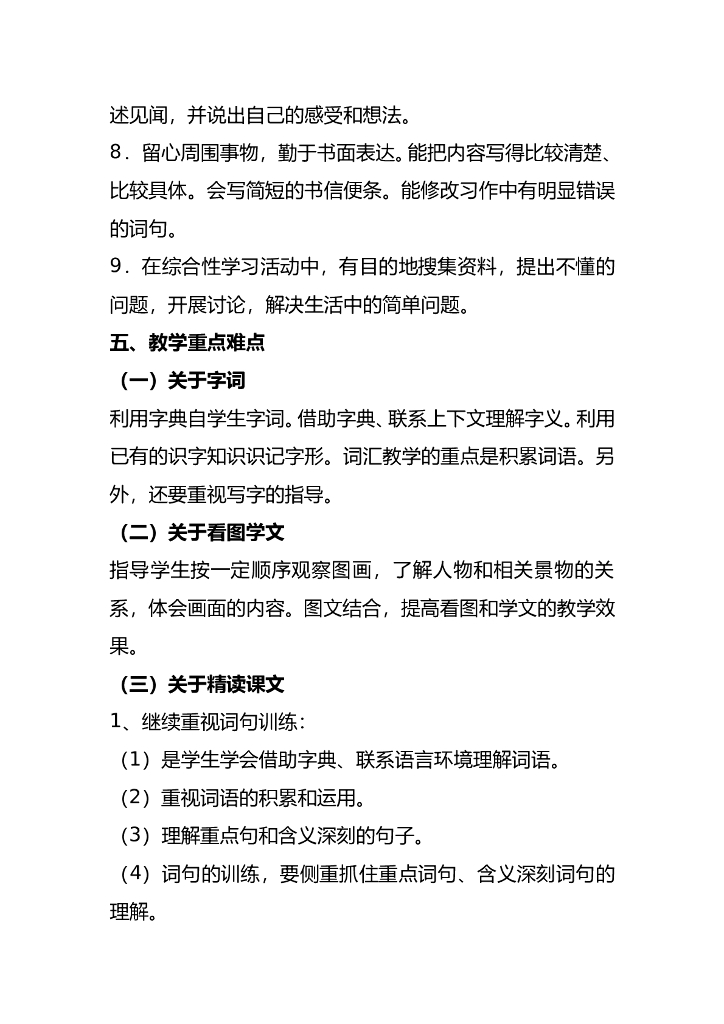 四年级下册教学计划(含教学进度){2021春部编语文}.doc