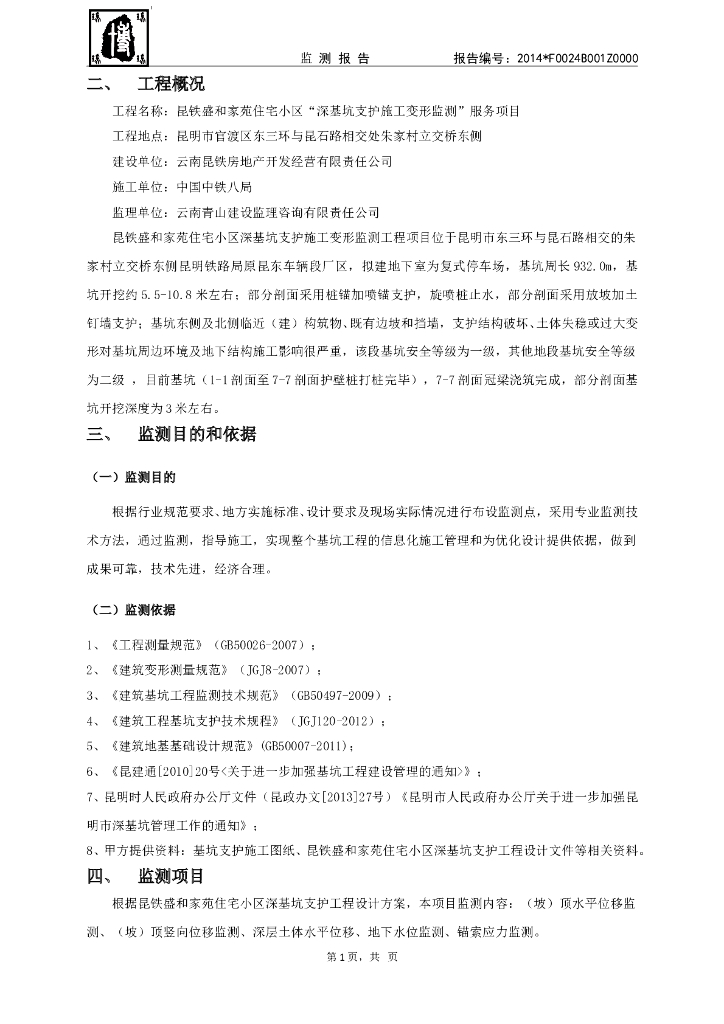 住宅小区地下室桩锚+土钉墙基坑监测报告.doc
